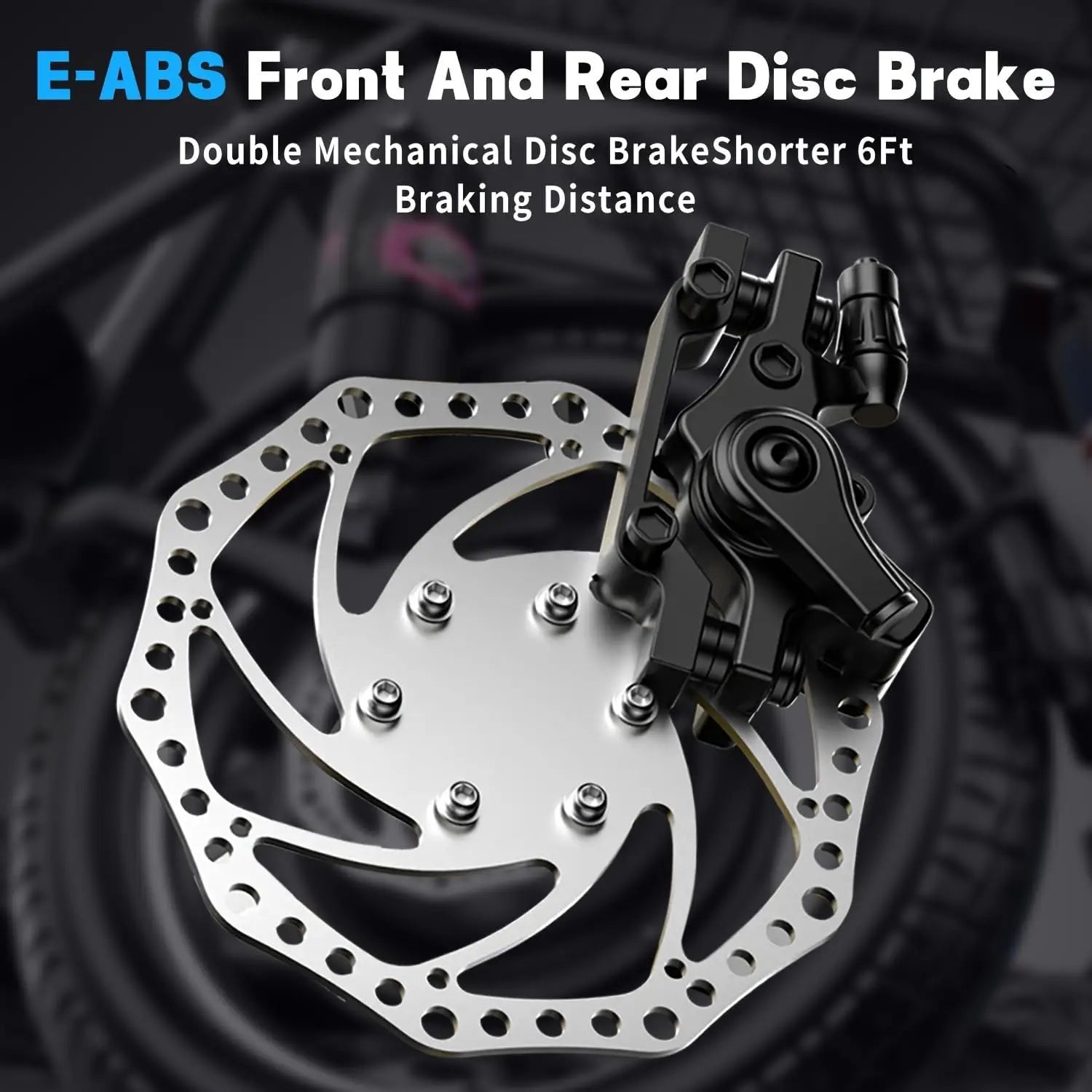 - Full Suspension and 14" Fat Tires: You ride smoother thanks to front and rear shocks and a seat shock, while 14" pneumatic tires deliver grip, elasticity, and durability on varied surfaces.